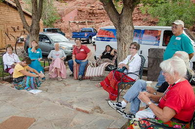 On our arrival the temperature was 95 degrees, and those veterans of the food run a year ago were having thoughts of the very hot day we had at Oljato at that time. Fortunately a cloud cover moved over, so when we sat outside for the ceremony it seemed more agreeable.